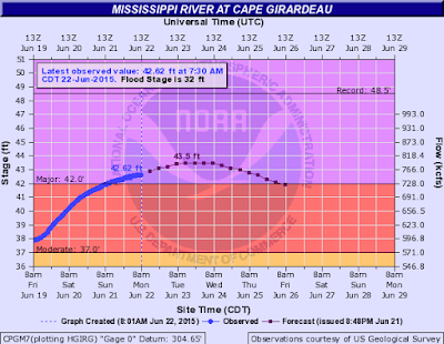 So, that water is heading south and the river will continue to rise in Region 8. At this time, it appears that the water levels should stay BELOW major flood stage. Here is the forecast graph in Caruthersville: